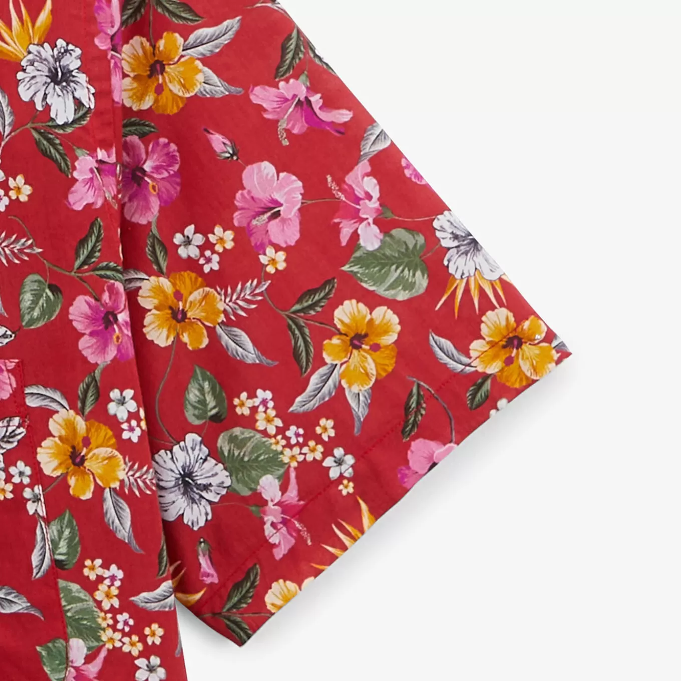 This regular short-sleeved shirt features a red flower print, adding a touch of freshness and liveliness to your summer …